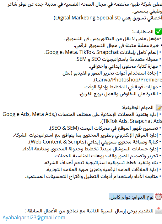 وظائف في جدة اليوم بمجال التسويق الرقمي